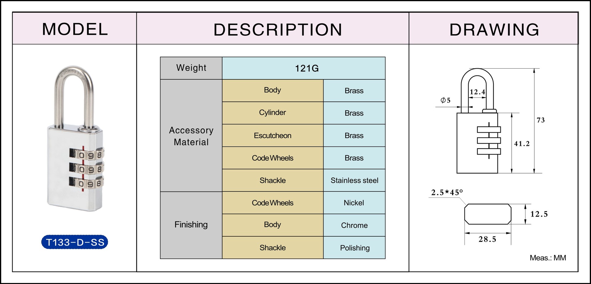 | 材質(zhì) | 銅 | 型號 | T154 | 適用范圍 | 書桌 抽屜 日記本 旅行箱 背包 儲物柜 工具箱 更衣柜 大門 |